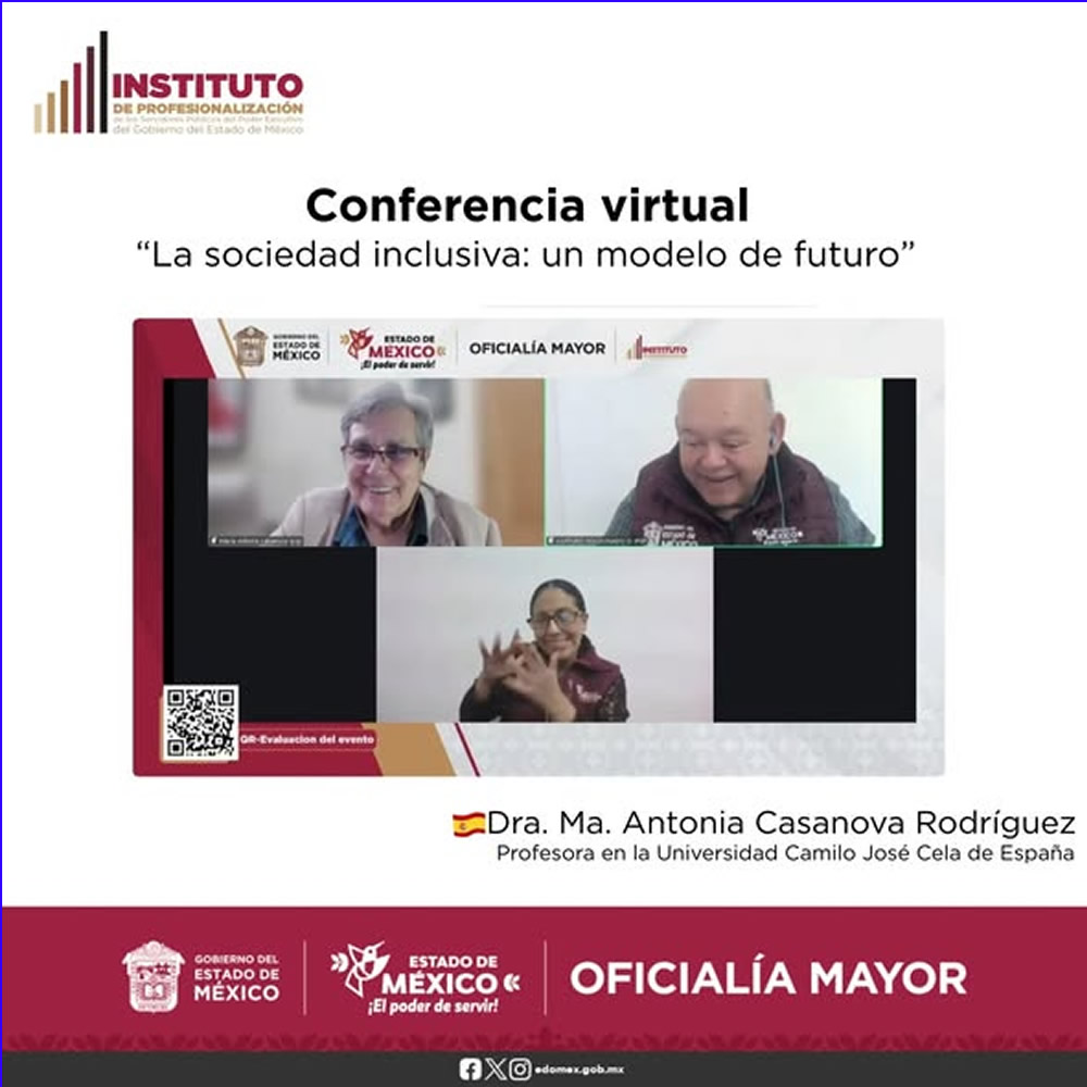 A la conferencia virtual titulada “La sociedad inclusiva: un modelo de futuro”, impartida por la Dra. Ma. Antonia Casanova Rodríguez.
